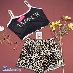Summer women's pajamas & Barbie cloth & model of high-waisted pants and a top with a print on the chest