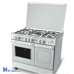 Deluxe white oven (broiler motor + electronic ignition + Tefal tray inside the oven + movable legs to control the oven height + light bulb inside the oven)