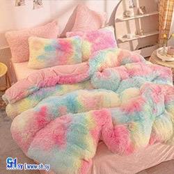 Walnut marshmallow feather duvet with fur fitted sheet and two feather pillows Size 220 x 245