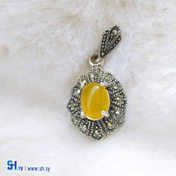 925 Italian silver pendant crowned with a shams agate stone inlaid with black marquise (antique gold)