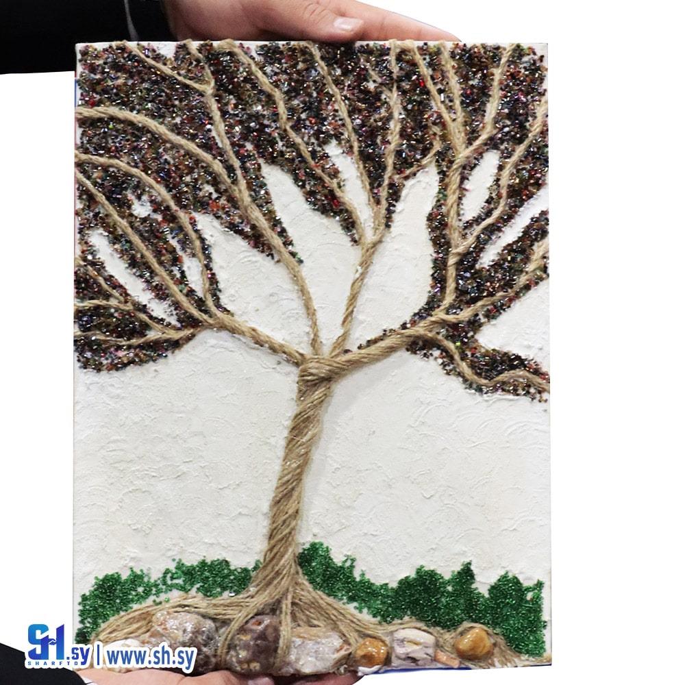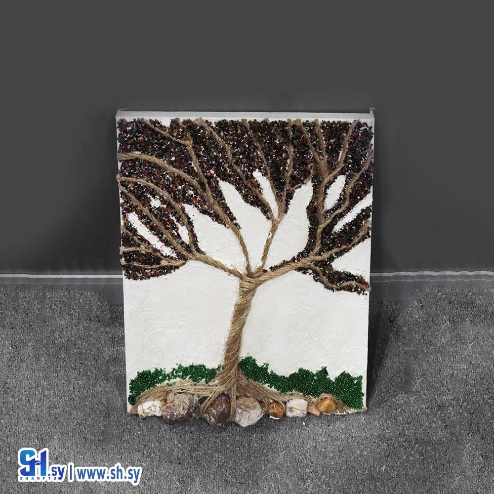 Canvas painting - white cement - thread - silane - natural stones