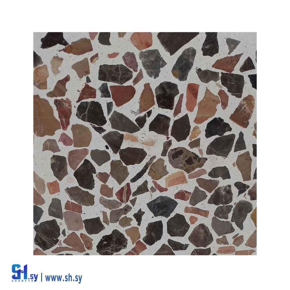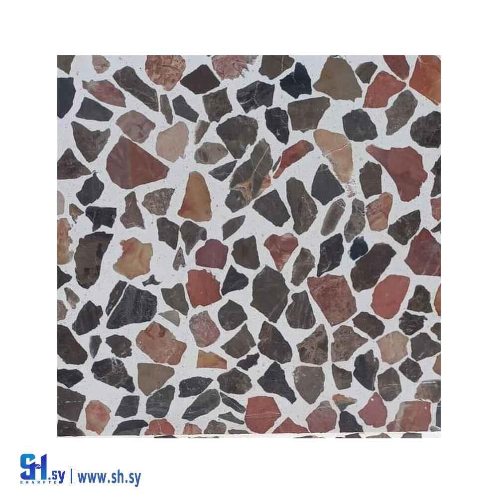 Red, white, black, black face mosaic floor tiles (Mahmoud Khaddour, Egyptian)