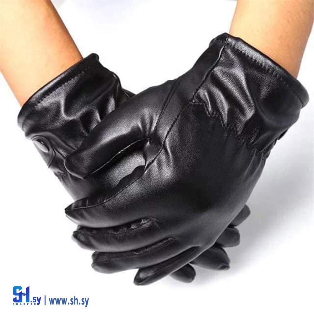 Men's Gloves, Treated Leather, Fully Fur Lined, with Fingers (Al-Assaf)
