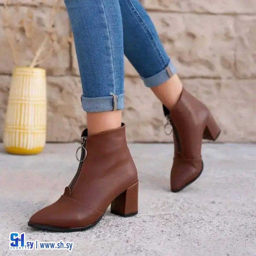 Women's short leather boots with heels (Royal Maher Shoes)