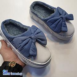 Women's shoes with a bow lined with fur Stitched sole (Al-Emad shoes)