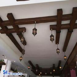Walls of Balqis Krajit with a pattern of beige branches and a relief quarry (Zulfi Ceramics Exhibition)