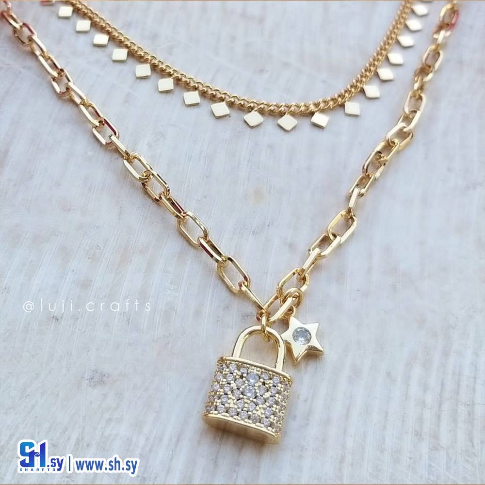 طوق طبقتين ذهب برازيلي موديل القفل (LUJI Crafts)