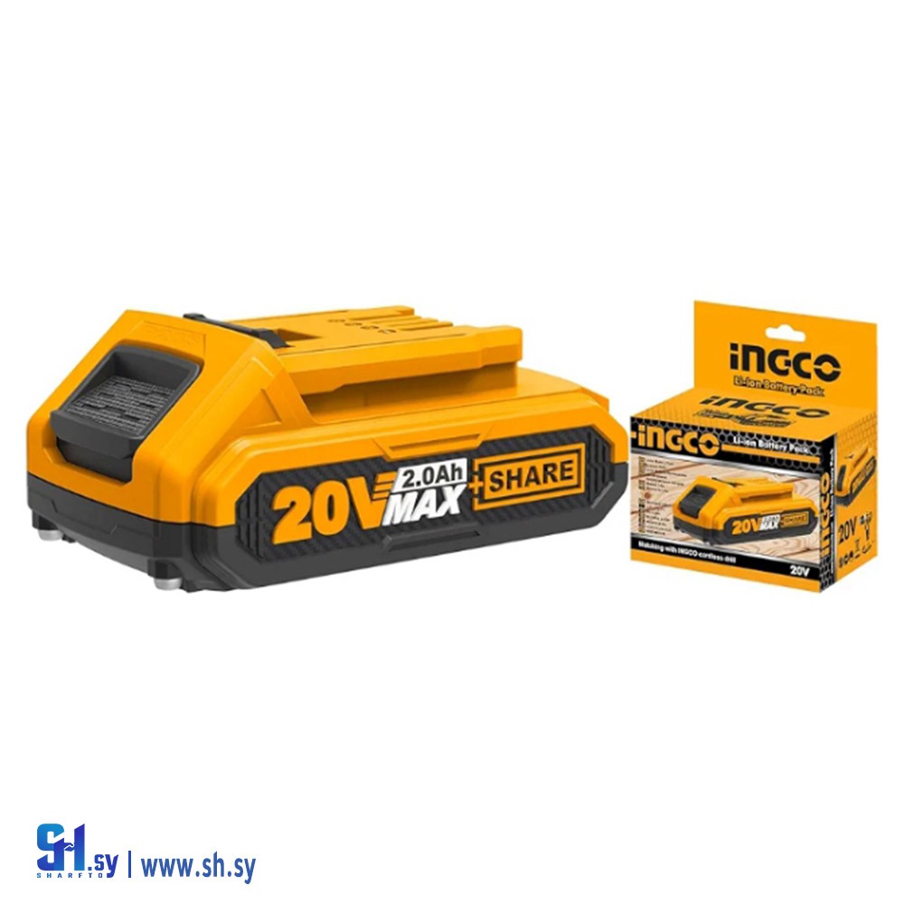 Lithium battery Power: 20 volts Specific to all equipment that operates on a 20-volt battery In a cardboard box