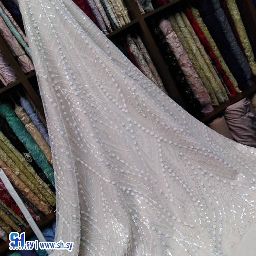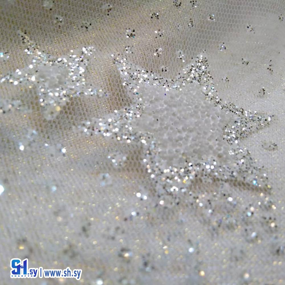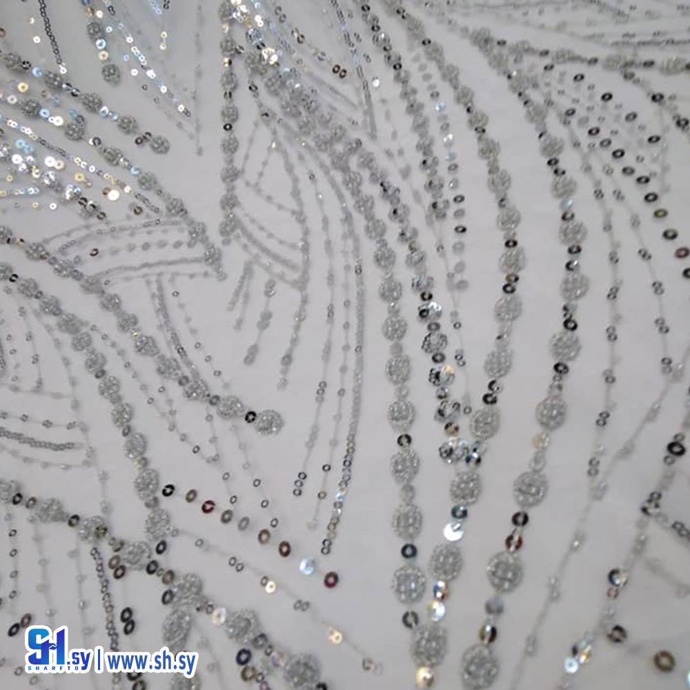 Embroidered tulle fabric with geometric pattern 1 (أقمشة روز)