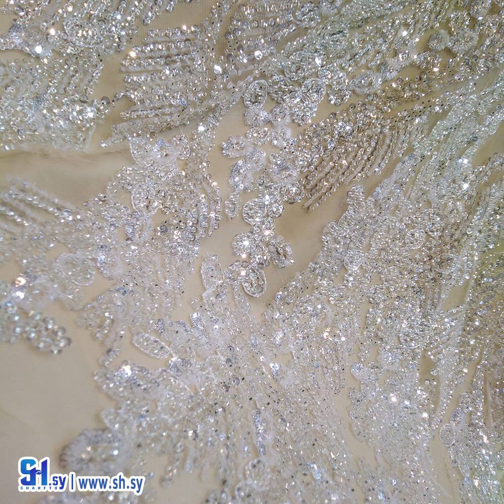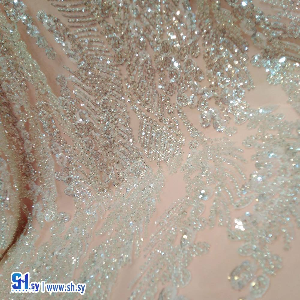 Embroidered tulle shak loom fabric 7 (أقمشة روز)