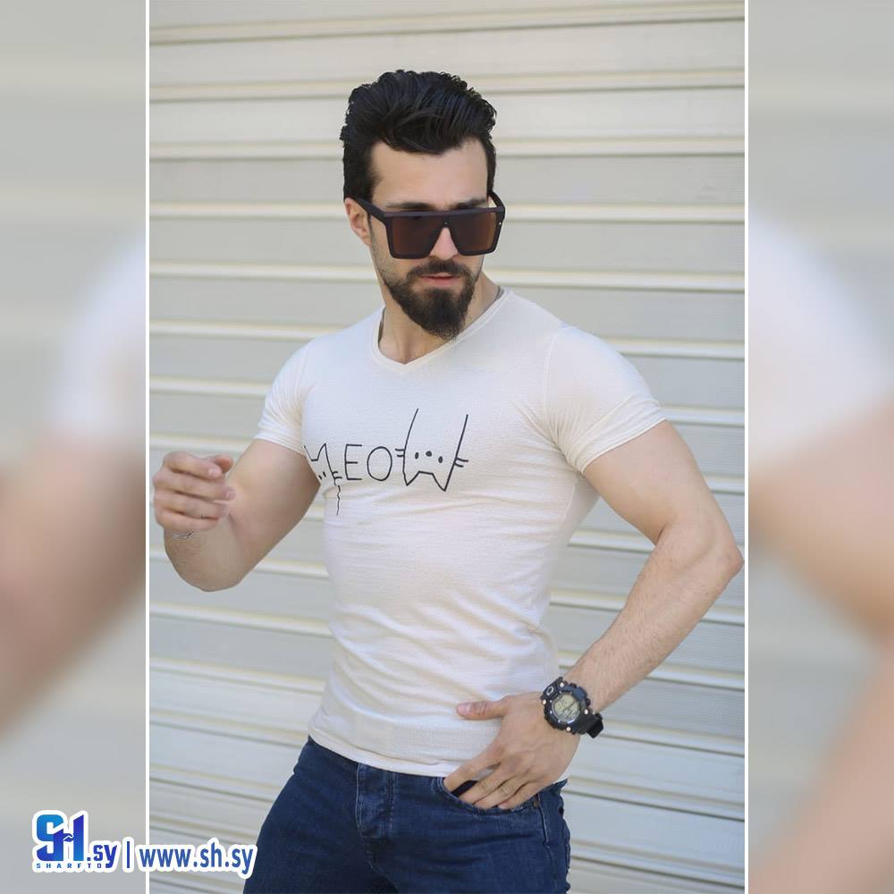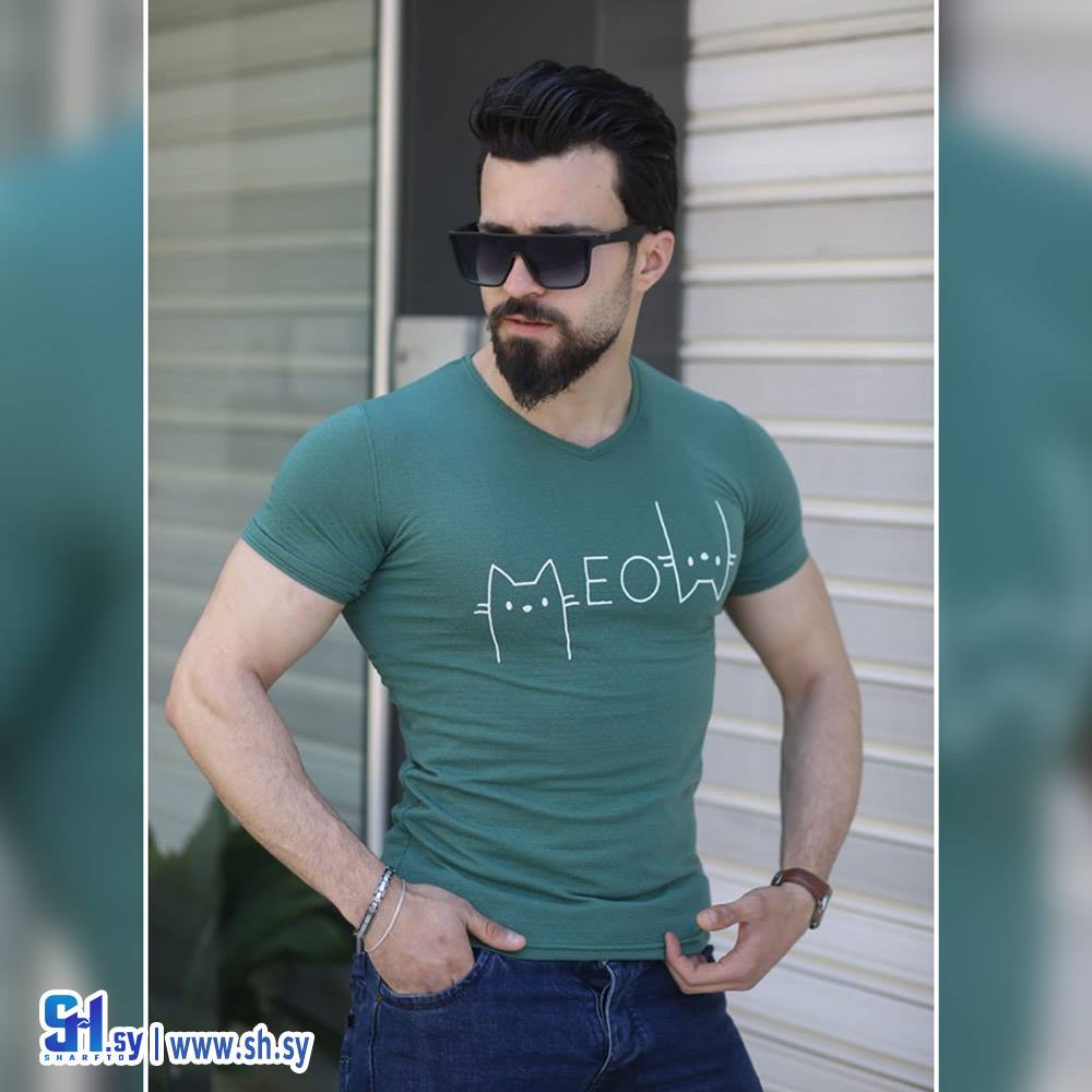 Summer men's sweater & cotton fabric + lycra & half sleeve model printed at the chest