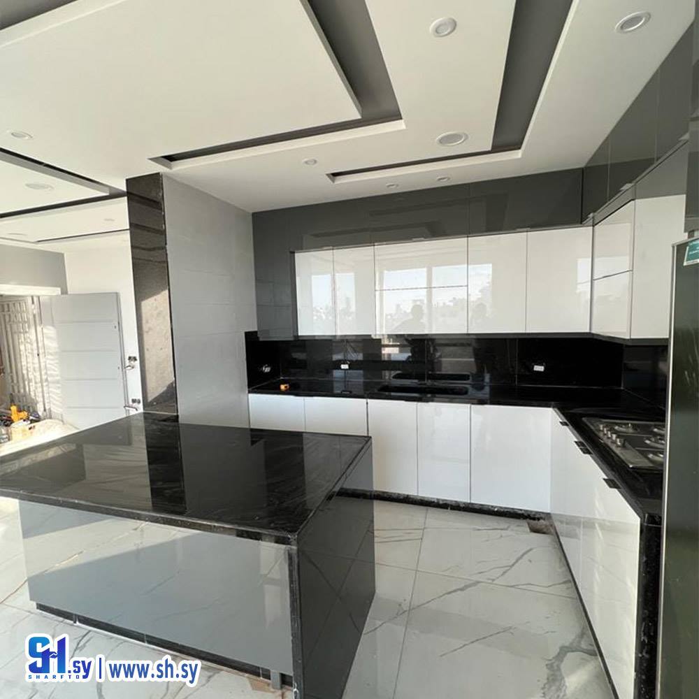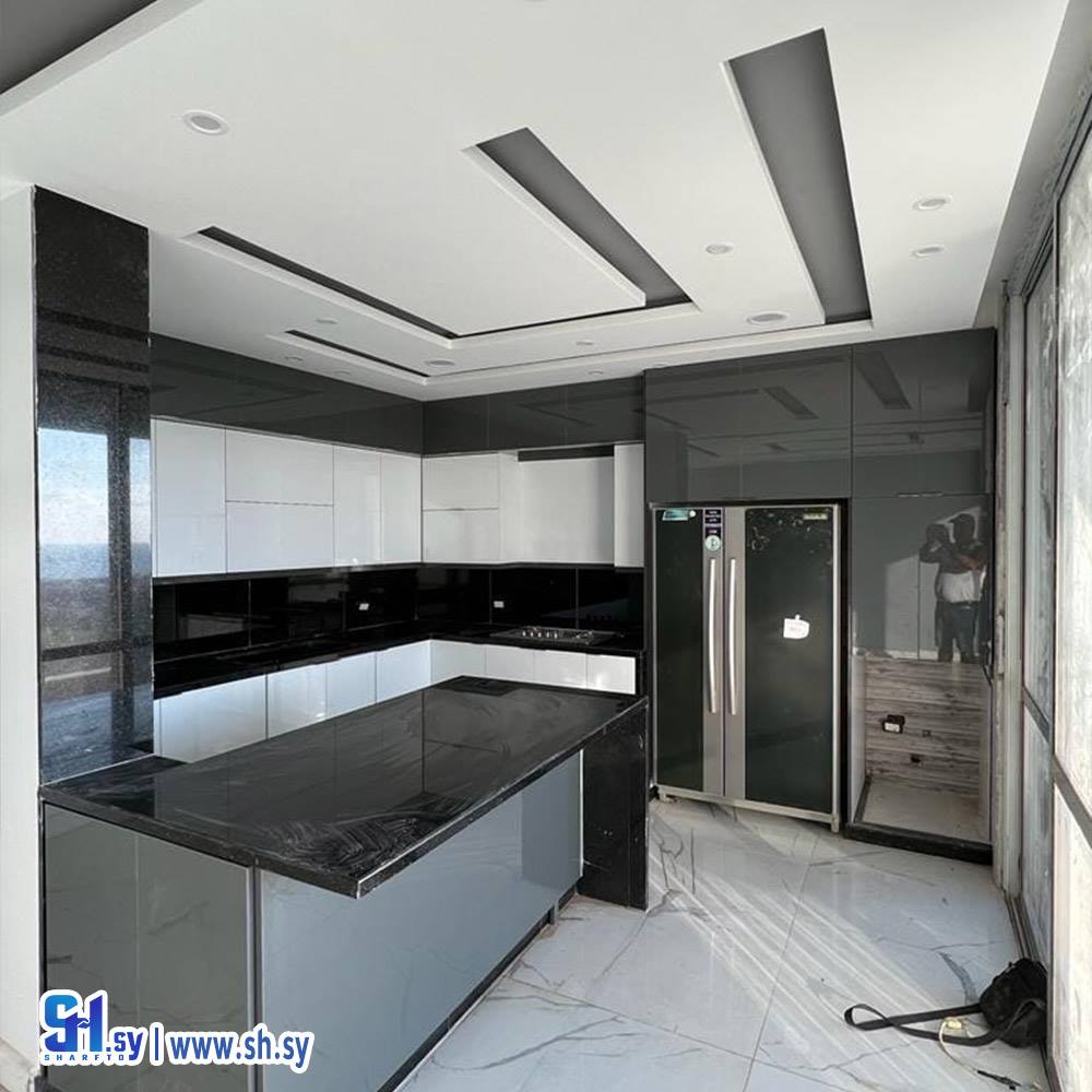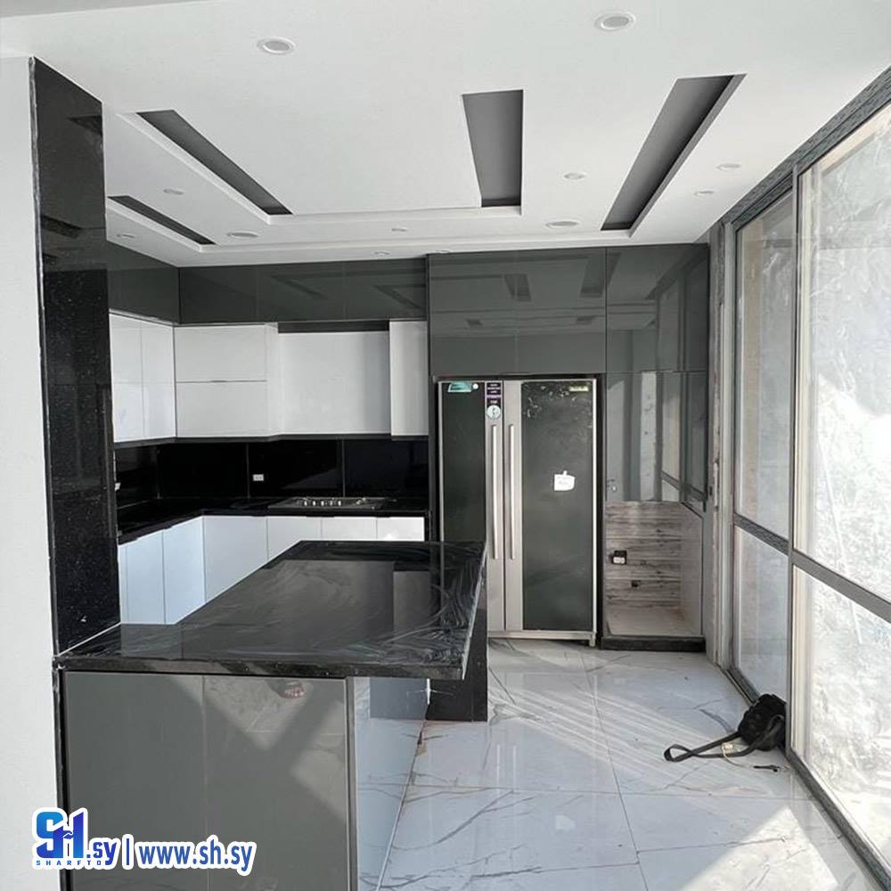 مطبخ هاي غلاس أبيض و أسود (معرض الرضوان)