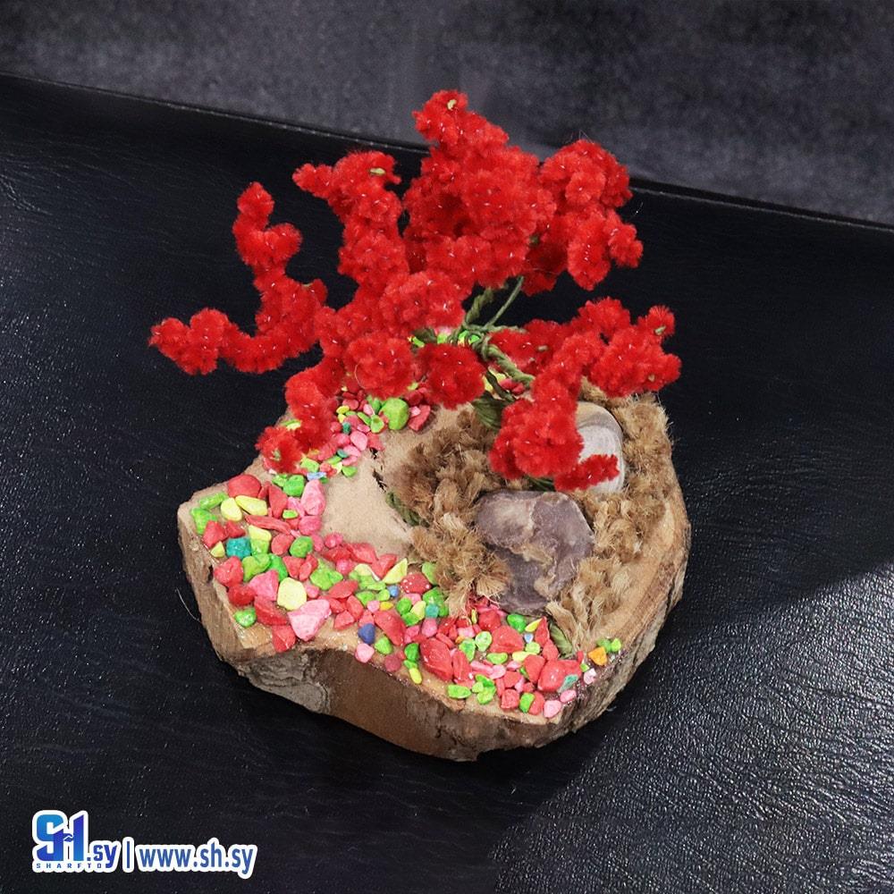 حصا ملون - جذع شجرة - حجار طبيعية -خيط أنب