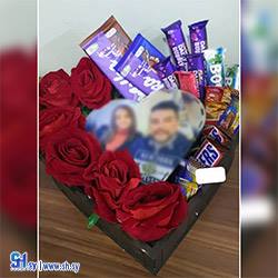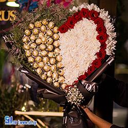 تزيين باقات ورد وشوكولا موديل القلب (أزهار الوروس)