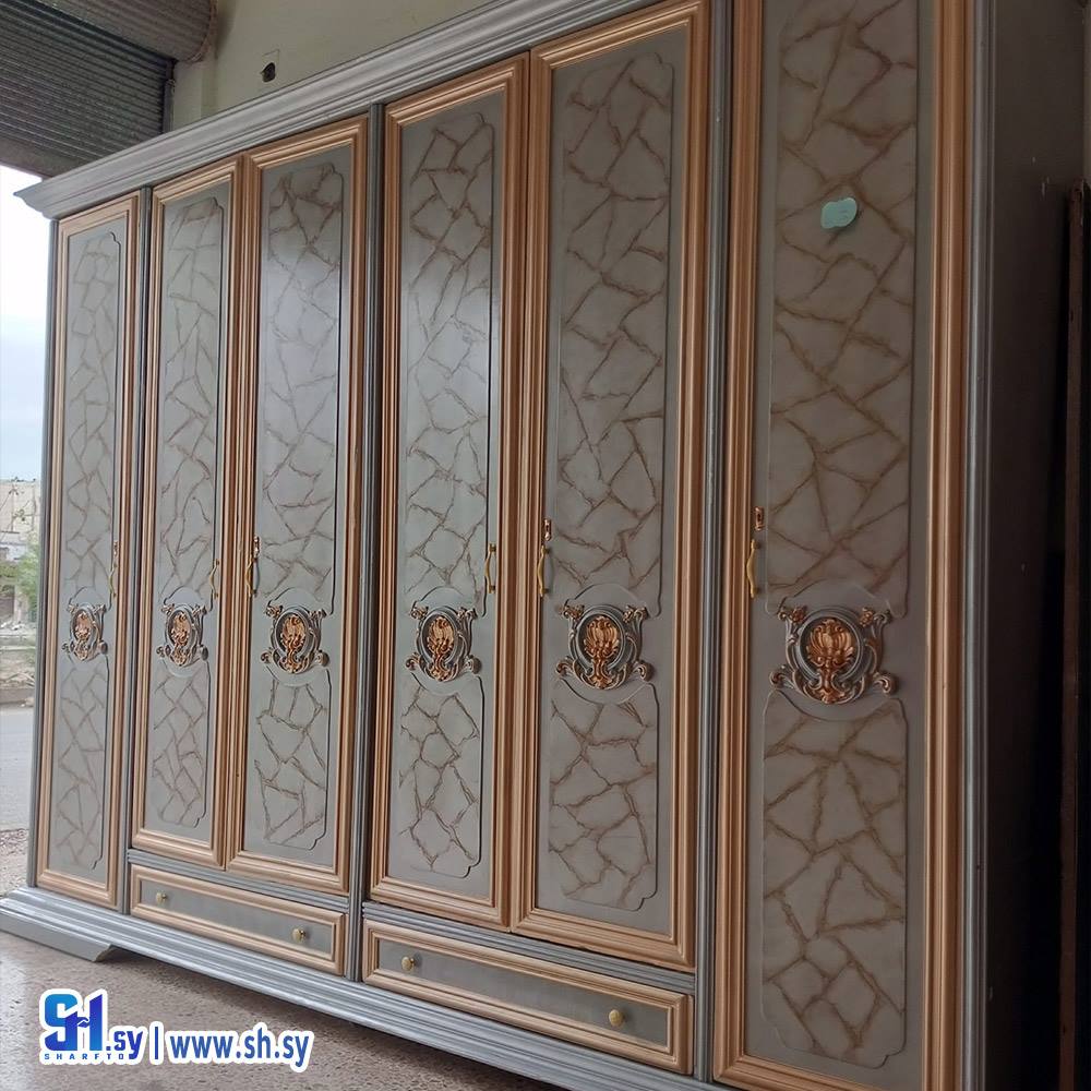 خزانة 6 درفات مع دروج - تخت مزدوج كبير- مراية ميك أب مع كرسي - كمدينتين