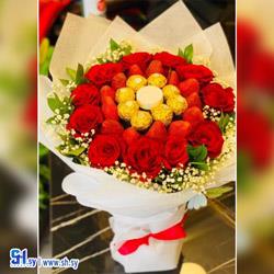 تزيين باقات ورد وشوكولا موديل القلب (أزهار الوروس)