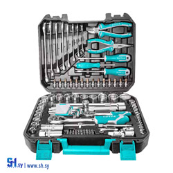 "طقم فنجان 1/4""45 قطعة كروم 13 فنجان 1/4"" قياس: 4-4.5-5-5.5-6-7-8-9-10-11-12-13-14مم كروم فاناديوم وصلة كروم 1/4"" عدد 2 50 و 100 مم يد لواح 1/4"" كروم مفك راس فنجان 25 مم 1/4"" لقمة مفك عدد 20 القياس: PH:1-2-3 PZ:1-2-3 SL:4-5-6MM مفتاح مسدس: 1.5-2-3-4-5-6 مم T:T10-15-20-25-30 وصلة راصور 1/4"" 150 مم يد طقطاق 1/4"" مسنن ناعم 72 سن كروم ضمن حقيبة بيكاليت ثقيلة"