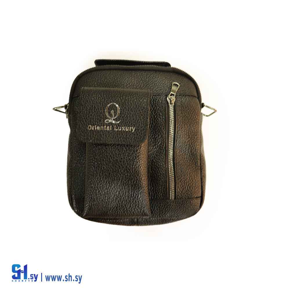 حقيبة رجالية مصنوعة من الجلد الطبيعي مع سحابين + جيبة خاصة لوضع الموبايل