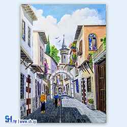رسمة اكرليك على قماش لحارة دمشقية 8 (AlFredo Shankan)