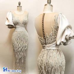قماش تول مطرز & مشكوك نول & قماش فساتين سهرة & أشكال هندسية