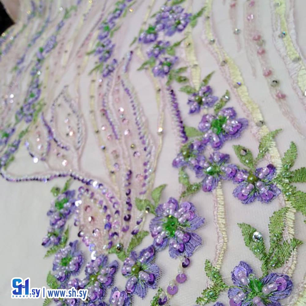 قماش تول مطرز & نافر & دمج الوان & قماش لفساتين السهرة