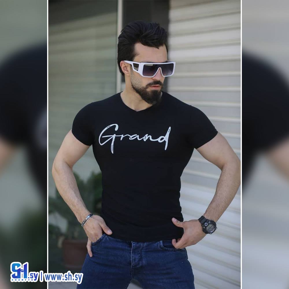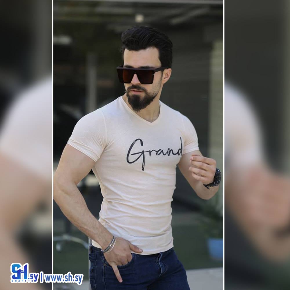 كنزة رجالي صيفي & قماش ليكرا & موديل نصف كم مع طبعة على الصدر