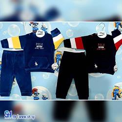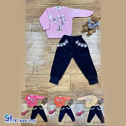 بيجامة بي بي & قماش مخمل وقطن & موديل بنطلون وكنزة مع طبعة دب من عمر الساعة إلى عمر السنة